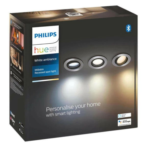 Le spot encastrable Philips Hue White Ambiance Milliskin en aluminium