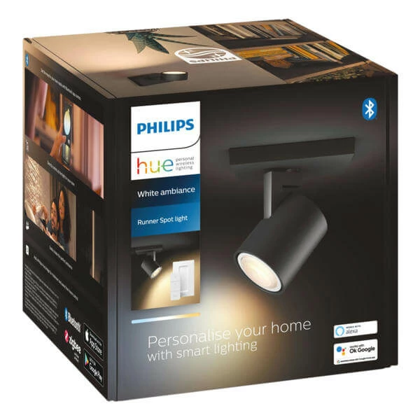 Le Philips Hue White Ambiance Spot Runner noir, avec tête réglable,