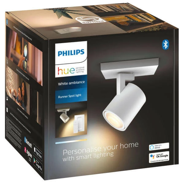 Le Philips Hue White Ambiance Spot Runner blanc, avec tête réglable,